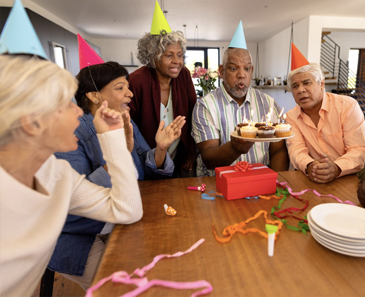 Monthly birthday parties to which all residents are invited. Families and friends may be invited to participate. Volunteers often help to bring residents to the party and join in the fun.