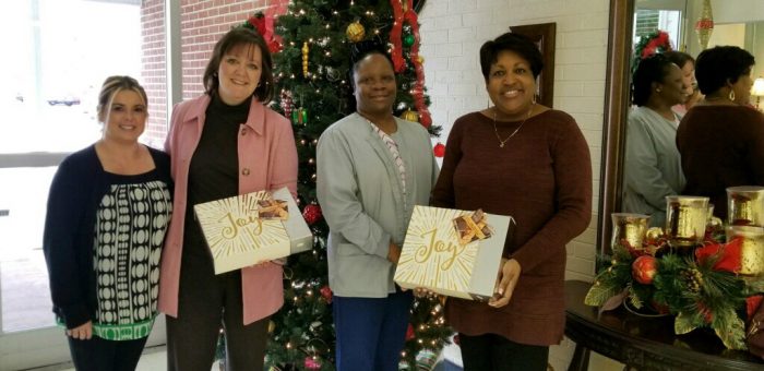 Every year Mission Convalescent Home hosts a Christmas Door Decorating Contest at the facility. Different businesses and providers in the community volunteer to decorate the residents’ doors to bring a little Christmas Joy to each resident. This year (Christmas 2017) our doors were judged by Tammy Buchanan, City of Jackson and Sherita Greer Graham, BanCorpSouth. Thank you both so very much for your time and participation. The winners of the door decorating contest are then announced at the annual Holiday Dinner. This year’s winner of the door decorating contest went to Cumberland Missionary Baptist Church. Thank You to all that participated and making Christmas once again special for each resident.